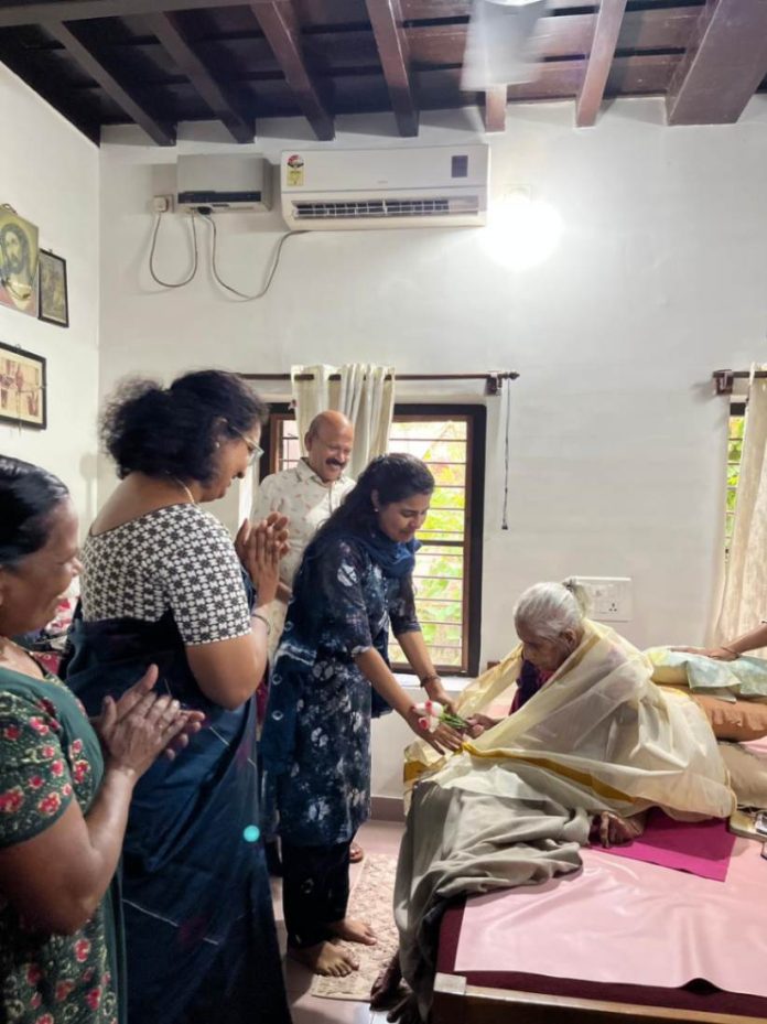 തൃശൂർ ജില്ലാ ഇലക്ഷൻ ടീമിൻ്റേയും സ്വീപ് തൃശൂരിൻ്റേയും നേതൃത്വത്തിൽ ജില്ലയിൽ നൂറ് വയസ്സിനു മുകളിൽ പ്രായമുള്ള സമ്മതിദായകരെ ആദരിച്ചു. വോട്ടർ ബോധവത്കരണ പ്രവർത്തനങ്ങളുടെ ഭാഗമായി സംഘടിപ്പിച്ച ചടങ്ങിൽ സ്വീപ് നോഡൽ ഓഫീസറും അസിസ്റ്റന്റ് കളക്ടറുമായ സ്വാതി മോഹൻ റാത്തോഡ് പൊന്നാടയണിയിച്ച് ആദരിച്ചു.